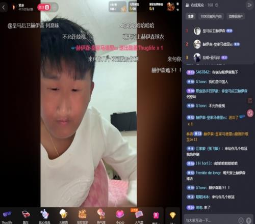 赫伊森轉(zhuǎn)發(fā)的圖片本人開直播,禮物榜上都是球迷