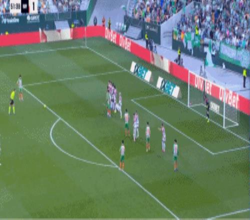 第90+10分鐘,皮球出界在先,貝蒂斯進球無效