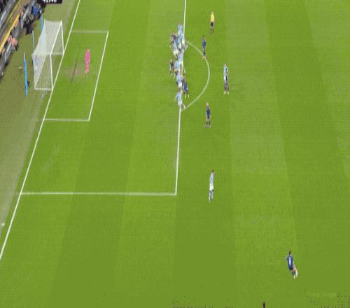 第26分鐘,塞梅尼奧策動進(jìn)攻,哈蘭德游走到了邊路,化身多庫下底傳中,奧萊利頭球破門。