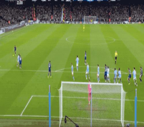 第41分鐘,紐卡斯?fàn)栐俅潍@得任意球,托納利傳中,高大后衛(wèi)丹伯恩頭槌破門,但丹伯恩落入曼城的越位陷阱,進(jìn)球被秒吹。
