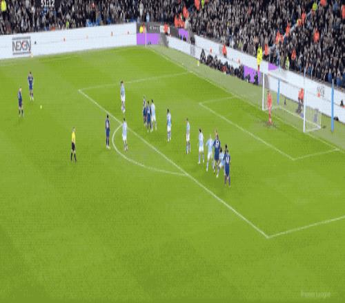 第52分鐘,紐卡斯?fàn)柅@得前場任意球,霍爾的射門繞過人墻,但沒有命中球門范圍之內(nèi)。