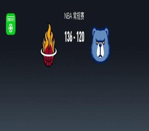 第四節熱火阿德巴約拿下7分,灰熊GG-杰克遜拿下8分,最終熱火136-120戰勝灰熊