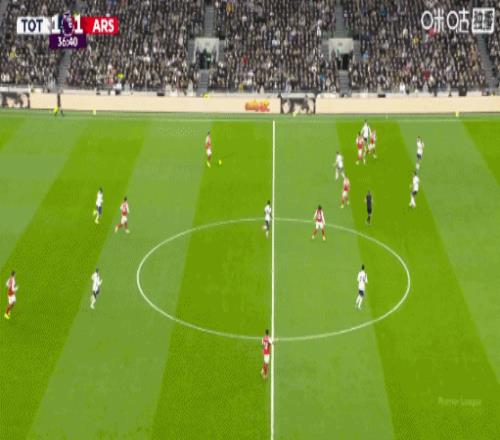 第34分鐘,賴斯在后場控球失誤,被穆阿尼搶斷,隨后穆阿尼突入禁區,一腳低射攻破拉亞十指關,熱刺1-1阿森納。↓
