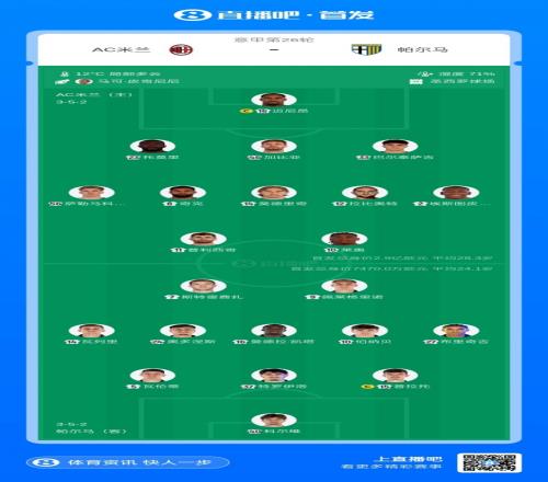 體育播報02月22日宣 北京時間2月23日星期一01:00,意甲第26輪,AC米蘭坐鎮主場圣西羅迎戰帕爾馬,目前雙方公布了本場比賽的首發陣容。更新:加比亞賽前訓練受傷,德溫特頂替首發!