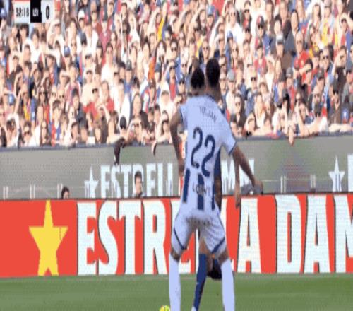 開場只有4分鐘,埃里克·加西亞送出助攻,本賽季聯(lián)賽第二次首發(fā)的貝爾納爾鏟射破門。