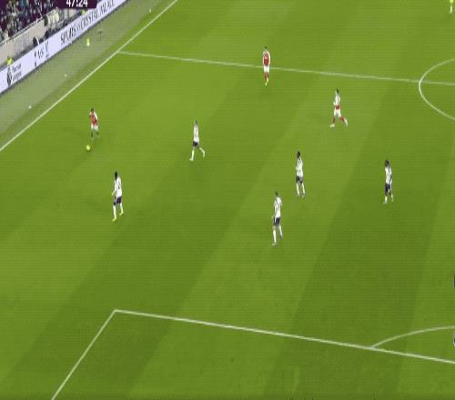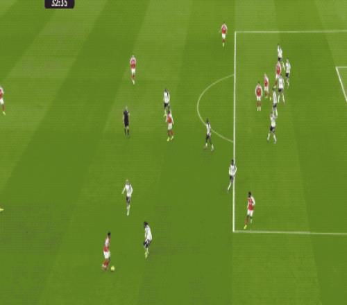 第32分鐘,薩卡晃過薩爾后傳中,埃澤停球不太利索,但迅速凌空抽射,阿森納取得領(lǐng)先。