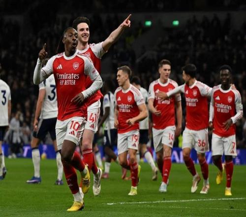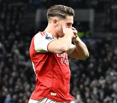 2球落后,圖多爾沒有猶豫立馬換上索蘭克、里沙利松和特爾做最后一搏;第83分鐘,斯彭斯右路一對一強行突破橫傳,里沙利松腳后跟嗑向球門,拉亞在皮球即將越過門線前將球撈回,熱刺險些追回一球。第94分鐘,馬丁內利積極反搶斷球,馬杜埃凱順勢分球,厄德高果斷直塞,哲凱賴什頂開格雷后捅射一樣梅開二度,4:1!最終在埃澤和哲凱雙雙梅開二度下,阿森納本賽季雙殺熱刺,第一次在英超對熱刺拿下4連勝;目前槍手多賽1場暫且領先曼城5分。