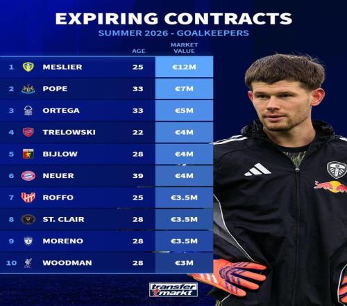 德轉列今夏合同到期的十大門將:諾伊爾、波普、梅利耶在列