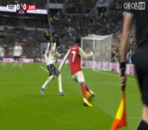 開(kāi)場(chǎng)第11分鐘,裁判設(shè)備出故障,比賽被迫暫停了5分鐘。這個(gè)小插曲像是給這場(chǎng)德比加了層戲劇濾鏡。第32分鐘,薩卡右路突破后倒三角回傳,埃澤中路包抄破門,1-0。
