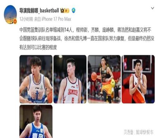 從這一點上來看,在徐杰、曾凡博、龐崢麟、齊麟、趙嘉義、程帥澎以及蔣浩然出局后,男籃出征最終12人名單也就浮出水面了。后衛線胡明軒、趙睿、廖三寧、高詩巖、趙繼偉。鋒線則是張鎮麟、王浩然、朱俊龍、李弘權。內線大概率則是胡金秋、余嘉豪、徐昕。而焦泊喬和賀希寧,大概率會被放棄。或者,作為臨時備胎人,繼續留在大名單上,以備不時之需。