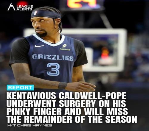 來自名記Chris Haynes的報道,灰熊后衛考德威爾-波普將接受手指手術,以矯正右手小指錯位問題,本賽季剩余比賽都無法出戰。