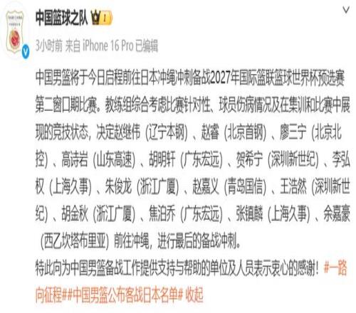 男籃世界杯亞洲預選賽第二窗口期將至,春節期間仍然在刻苦集訓準備的中國男籃,敲定了14人名單,這支隊伍將前往沖繩,繼續備戰與日本隊的關鍵戰役。此番出征,身為主教練的郭士強選擇了6后衛、5鋒線、3內線的搭配,這也是教練組綜合對手特點、球員集訓中競技狀態和傷病情況的選擇。