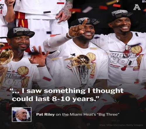 盡管詹姆斯承認萊利在自己職業生涯中意義重大,但他也表示,真正影響自己成長的其實是整個熱火組織。“我覺得不只是帕特一個人,實際上是整個熱火隊的體系。”詹姆斯說道,“我去那里只有一個目標和一個想法,就是贏得總冠軍。我覺得這是我在第一次效力騎士時沒辦法做到的,我已經努力過了,但當時就是感覺這件事是不可能的。所以我需要找到自己的道路,去完成一些目標。”