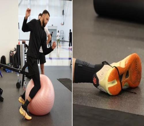 周日下午,全明星期間庫里與約內斯庫、歐文一同訓練的照片和視頻流出:他上腳了安踏狂潮5二代,鞋跟位置赫然印有庫里品牌的Logo。