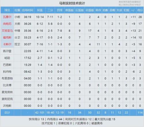 全場(chǎng)結(jié)束,馬刺114-103擊敗活塞。馬刺豪取9連勝,終結(jié)了活塞5連勝。文班亞馬16中6,砍下21分17籃板4助攻1搶斷6蓋帽,正負(fù)值+14,第四節(jié)單節(jié)轟下11分4蓋帽!坎寧安26投5中僅得16分6板10助2斷3帽3失誤,正負(fù)值-18。