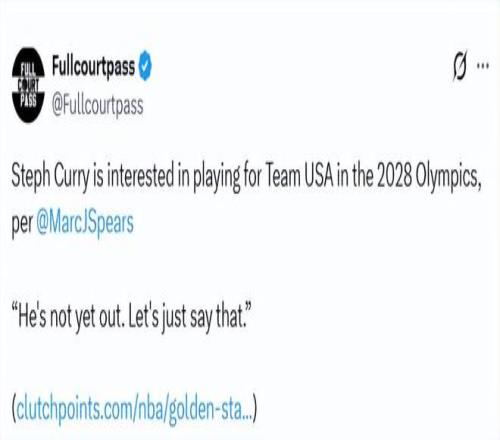 北京時間2月24日,據NBA名記Spears在節目上報道,庫里仍有興趣代表美國男籃出戰2028年洛杉磯奧運會。
