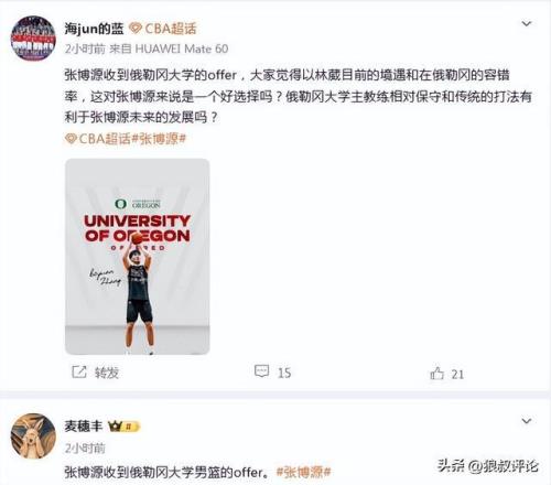 媒體人“海jun的藍(lán)”發(fā)文點(diǎn)評(píng):張博源收到俄勒岡大學(xué)的offer,大家覺(jué)得以林葳目前的境遇和在俄勒岡的容錯(cuò)率,這對(duì)張博源來(lái)說(shuō)是一個(gè)好選擇嗎?俄勒岡大學(xué)主教練相對(duì)保守和傳統(tǒng)的打法有利于張博源未來(lái)的發(fā)展嗎?