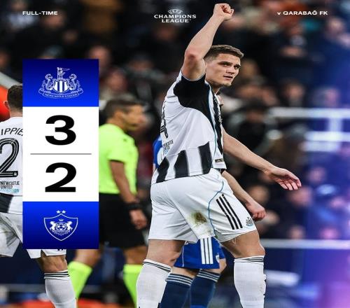 體育播報2月25日宣 紐卡斯爾在本輪歐冠淘汰賽附加賽次回合主場3-2擊敗卡拉巴赫,成功挺進歐冠16強戰。
