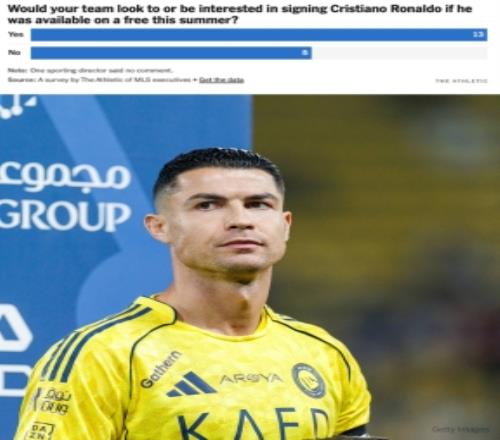 22名美職聯球隊高管中,13名有意簽下C羅,8名選擇無意,一名表示不予置評。