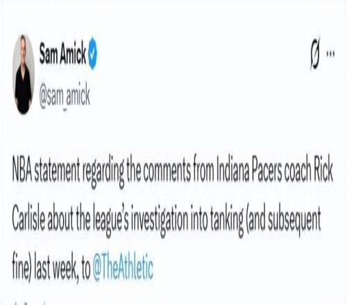 隨后,NBA發言人向The Athletic記者阿米克發表聲明,反駁卡萊爾對步行者調查過程的描述。
