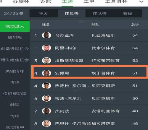 第一個,上賽季土超聯(lián)賽,安佩姆是整個土超成功過人榜第4名,整個賽季完成51次成功過人,和他并列的是1800萬歐的葡萄牙中場熱德松-費爾南德斯,他曾在英超熱刺踢過球的,你就知道安佩姆的過人能力了。雖然安佩姆只有150萬歐,但是他的價值不輸1800萬歐英超級別的球星。
