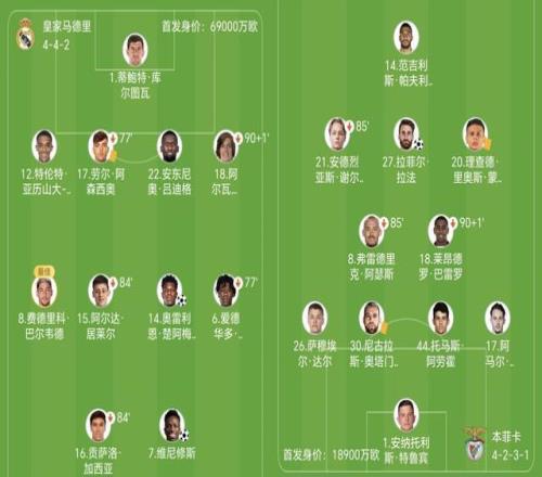 兩隊(duì)紙面陣容差距不小,皇馬光是首發(fā)球員身價(jià)就有6.9億歐元,本菲卡為1.89億歐元,帕夫利季斯單箭頭。穆里尼奧因紅牌無緣現(xiàn)場(chǎng)指揮,在伯納烏的包廂看比賽。