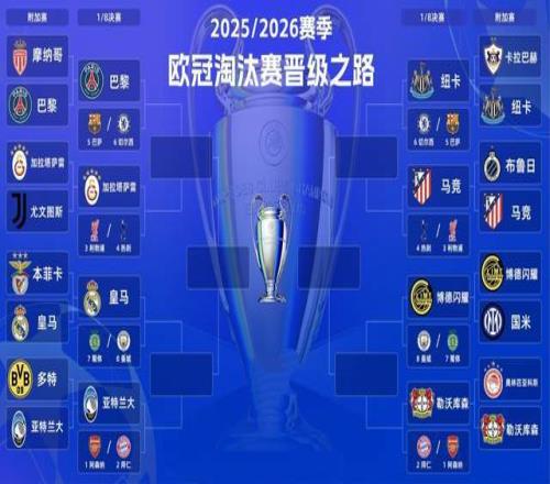 北京時間2026年2月26日消息。歐洲冠軍杯在上賽季進行了改制:從32強的傳統8個小組,變成了先打36強的聯賽制,再打淘汰賽附加賽。——這樣,附加賽連續兩個賽季出現名局。上賽季,皇馬和曼城提前相遇,結果安切洛蒂率隊6-3擊敗瓜迪奧拉。而本賽季,這樣的巔峰對決出現多場。包括本菲卡VS皇馬,大巴黎VS摩納哥,尤文圖斯VS加拉塔薩雷。