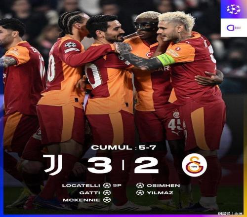 尤文圖斯主場3-2加拉塔薩雷,總比分5-7出局。加拉塔薩雷晉級16強,將對陣熱刺或利物浦。托雷拉送點,洛卡特利點射,凱利被直紅罰下,卡盧盧助攻加蒂破門,麥肯尼再下一城,總比分5-5進入加時。加時賽上半場奧斯梅恩破門,下半場伊爾馬茲再下一城。