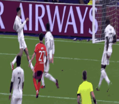 第53分鐘,皇馬獲得前場任意球,阿諾德傳中,阿森西奧的頭球稍稍高出。