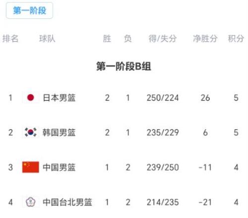 前兩輪,韓國隊主客場連贏中國隊,包括第二場14分大勝,因凈勝分落后日本隊暫居小組第二,中國臺北隊主客場連輸日本隊,因凈勝分落后中國隊暫居小組墊底,出線形勢最不利。