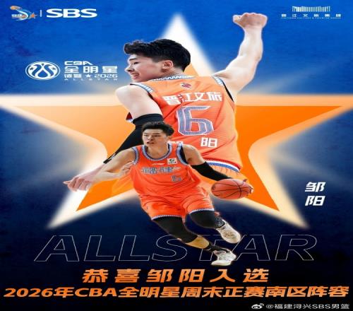 CBA公司于今日公布2026CBA全明星周末正賽及各類單項賽參賽名單,福建晉江文旅男籃隊長鄒陽入選全明星正賽南區陣容。