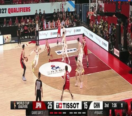 日本男籃連續前場板二次進攻得分!中國男籃15-27日本
