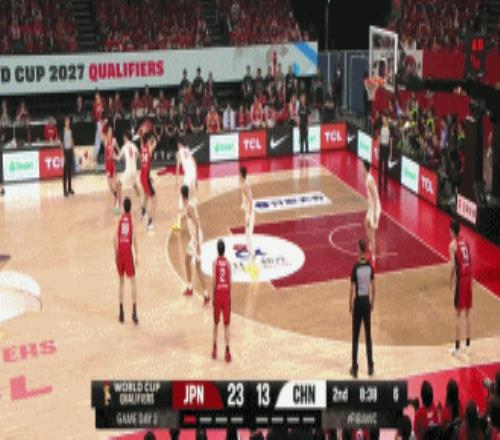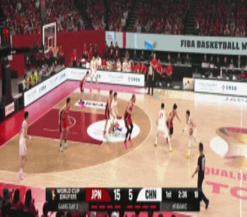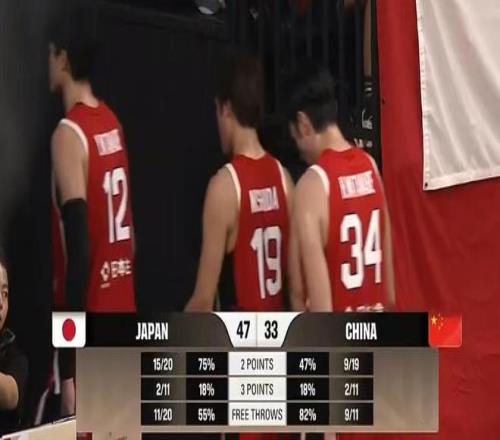 后半節趙睿依靠個人能力連造6罰,李弘權飚進底角三分,王浩然擋拆下順得手,日本隊繼續通過靈活的跑動+傳切+搶斷快攻頻頻在籃下制造殺傷,保持雙位數領先,次節中國隊再輸4分,半場33-47落后日本。