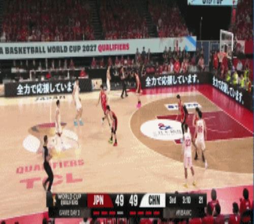 半場沒打完,分差已經來到14分,中國隊打了一節半,外線三分6-0,更加讓日本隊可以肆無忌憚的收縮防線,郭士強走馬換將再上余嘉豪、趙繼偉,5分02秒,賀希寧迎著防守干拔扔進中國隊第一記三分,朱俊龍也通過前場籃板拼搶艱難制造2罰打進。