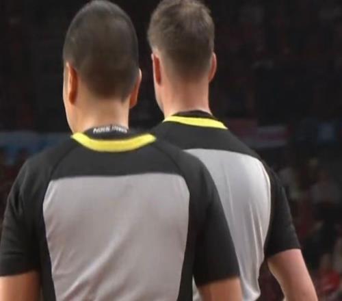 即便是末節保持大比分領先,可惜裁判還是在盡可能制造懸念。一些五五開的球,要不就是對手假摔,裁判基本上都吹罰我們犯規。并且只要手上有動作,也是我們犯規,這樣的吹罰就很莫名其妙,估計也是歷史罕見了。