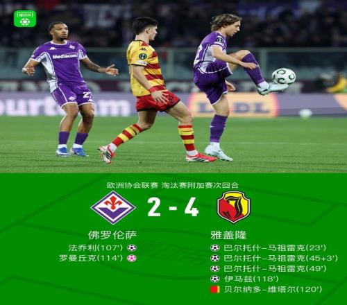 佛羅倫薩總比分54雅蓋隆晉級,馬祖雷克戴帽,法喬利破門