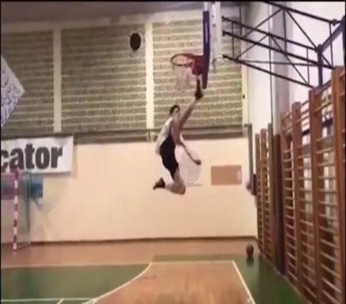 除了能跑,謝什科還有驚人的跳躍能力,那是他通過練習籃球獲得的技能。一段古早視頻記錄下14歲的謝什科高高躍起,將卡在籃框上的籃球踢下的畫面。