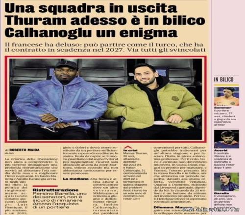 有些報道,“情緒價值”太多,實質內容太少,八字沒撇,只能姑妄聽之。比如《米蘭體育報》惡炒,國米將推進“徹底、完全的深徹換血”,甚至都開始炒作國米將恰爾汗奧盧、小圖拉姆,甚至是巴雷拉全部掃地出門的事了。