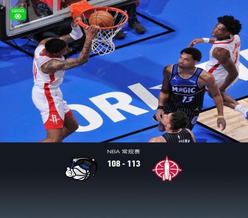 第四節魔術貝恩拿下9分,火箭杜蘭特拿下13分,最終魔術108-113不敵火箭
