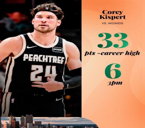 基斯珀特本場面對舊主更是打出了標志性一戰,全場出戰28分鐘,19中11,三分11中6,高效轟下生涯新高的33分,外加6籃板1助1搶斷。