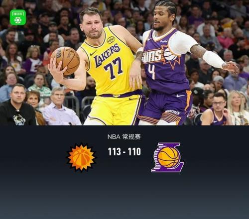 北京時間2月27日NBA 常規賽,菲尼克斯太陽對陣洛杉磯湖人。本場雙方交替打出高潮跌宕起伏,末節中段湖人一度落后12分,隨后湖人東契奇領銜反撲最后階段追平比分,奧尼爾三分命中領先3分,留給湖人0.9秒里夫斯錯失絕平,最終太陽113-110湖人。