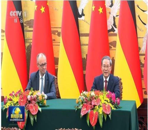 德國總理默茨、中國國務院總理李強共同見證簽約儀式 圖:總臺《新聞聯播》