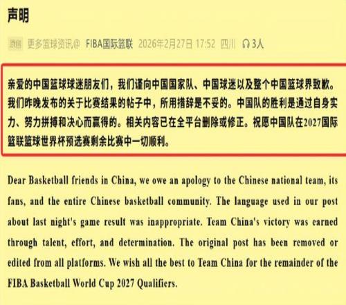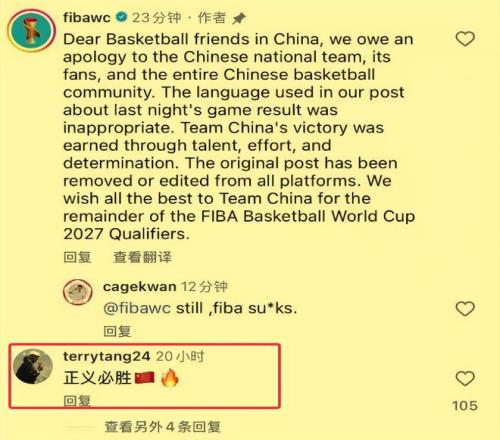 FIBA不再說中國男籃贏得不光彩了,而是改口說對不起!承認中國男籃絕對是憑實力贏得比賽,而不是什么“偷走了勝利”。
