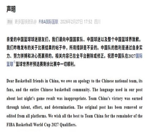 這兩條報(bào)道內(nèi)容中毫無對相關(guān)方面的貶損之義,甚至大加贊賞。當(dāng)然,國際籃聯(lián)沒必要和中國網(wǎng)友打一場關(guān)于英語表達(dá)的嘴巴官司,改了道歉了,對他們來說這事就結(jié)束了。