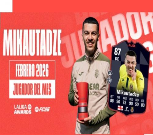 體育播報2月28日宣 西甲官方宣布比利亞雷亞爾前鋒米卡烏塔澤當選2月最佳球員。