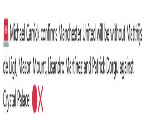 曼聯主帥卡里克透露,本周末與水晶宮的英超比賽中,受傷的四名球員梅森·芒特、利桑德羅·馬丁內斯、德里赫特和帕特里克·多古暫時無一可以復出。其中,6000萬英鎊中場芒特已經恢復訓練,有望在下一輪做客紐卡斯爾聯時回歸。姆貝莫雖然對埃弗頓時因傷被換下,但無礙繼續參賽。