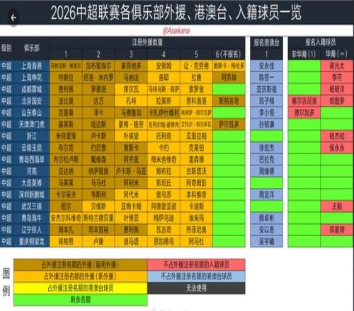 根據德國轉會市場中國區管理員朱藝的統計,2026賽季中超聯賽冬歇期,16支球隊引進45名新外援,8支球隊的外援更換人數達到3個及以上。山東泰山四名外援留隊,瓦科、克雷桑、澤卡和馬德魯加繼續代表泰山隊出戰新賽季,外援中衛阿爾瓦羅取代洛佩斯,泰山隊新賽季五外援陣容確定。