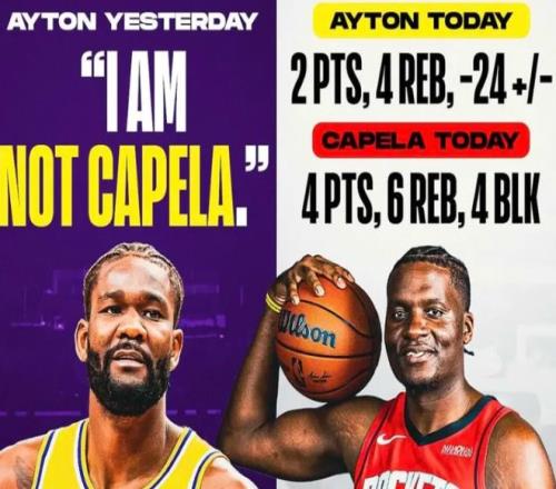 更讓人無法接受的是,就在這場恥辱性失利之前,湖人輸給魔術,狂砍21分14籃板的艾頓在接受媒體采訪時大放厥詞:“他們想把我變成克林特·卡佩拉,我可不是卡佩拉!” 那語氣里的不屑與驕傲,仿佛卡佩拉是什么拿不出手的角色,仿佛他這個狀元,就該高人一等,就該不做那些“臟活累活”。可艾頓啊,你倒是看看,你嘲諷的卡佩拉,如今在火箭做著什么;再看看你自己,在湖人又干了些什么。