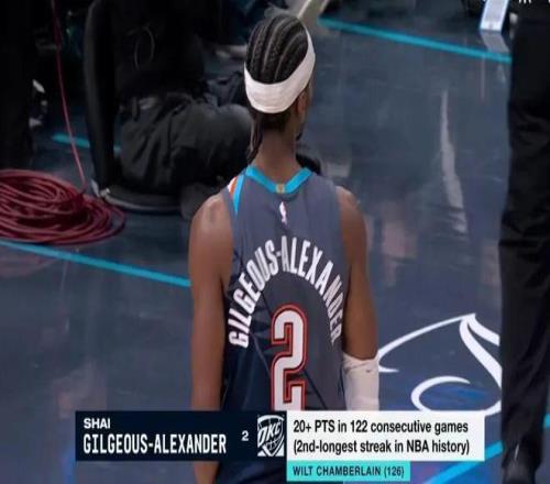 連續122場得分20+,距離第1的張伯倫只剩屈指可數的4場。