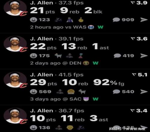 自從哈登加盟騎士后,阿倫這打法就像變了個人似的。本賽季2月份之前,阿倫場均還不到15分,看起來就是個普普通通的首發內線,可現在呢,直接“脫胎換骨”,成了球隊的“內線大殺器”,哈登這“魔力”可真是不小啊!哈登一入隊,阿倫就跟開了掛似的!前7場比賽,他場均得分“嗖”地一下竄過了20.4分大關,命中率更是高得嚇人,達到了75%,而且還有11.3個籃板穩穩收入囊中,這簡直就是內線小霸王啊!